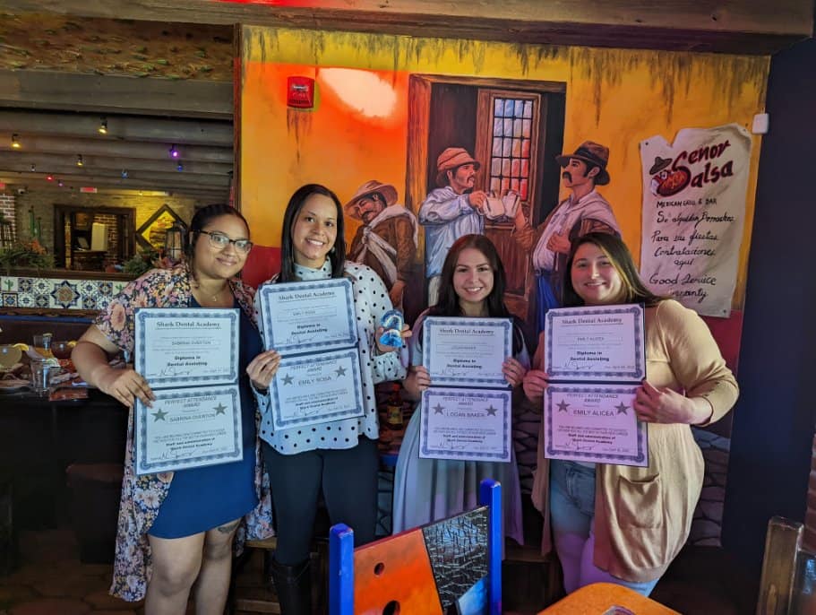 Shark Dental Academy offers one of the quickest paths to becoming a dental assistant. This is where you will learn the appropriate technical skills required for the job. Other dental assisting programs can take between one and two years to complete, depending on if the desired outcome is a certificate, diploma, or associate’s degree. With our unique curriculum focused on the practical skills of the dental assisting, you will earn a diploma of dental assisting in only 14 weeks!